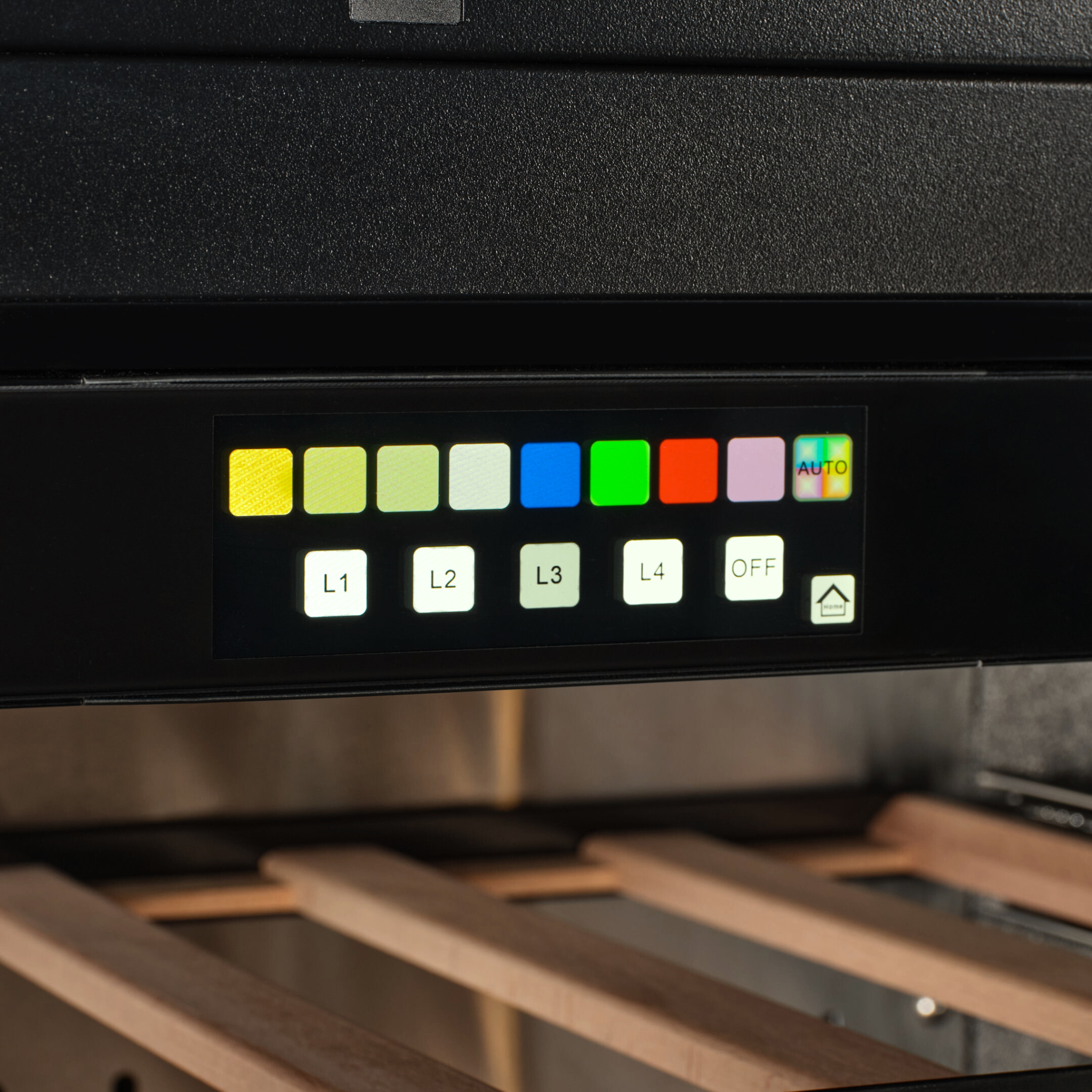 All push2open and panel ready models feature a TFT display with in built lighting options catering a multitude of living area settings - match the wine/beverage cooler lights to your furniture.