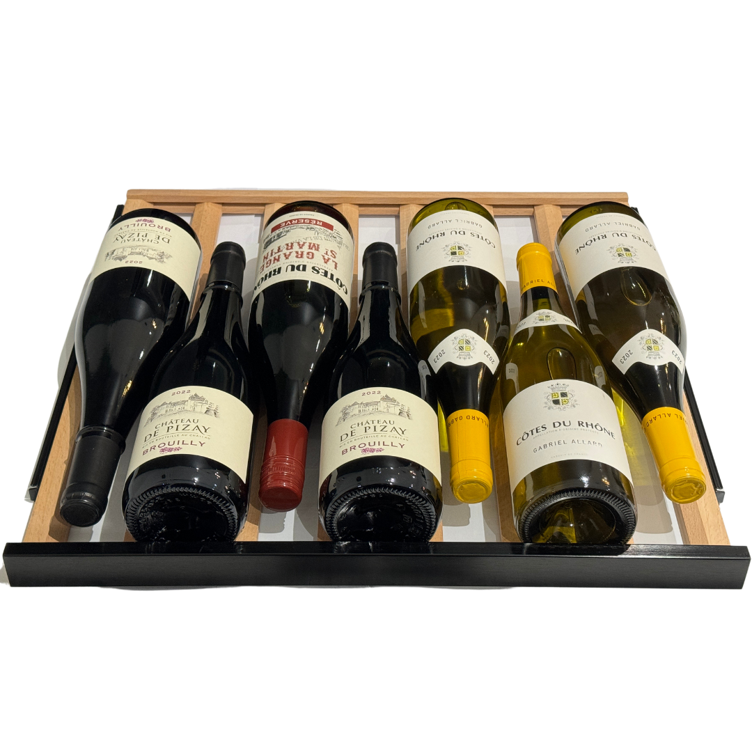 The internal fans are premium brushless fans that maintain a steady temperature across the wine cooler, providing optimal wine serving conditions.