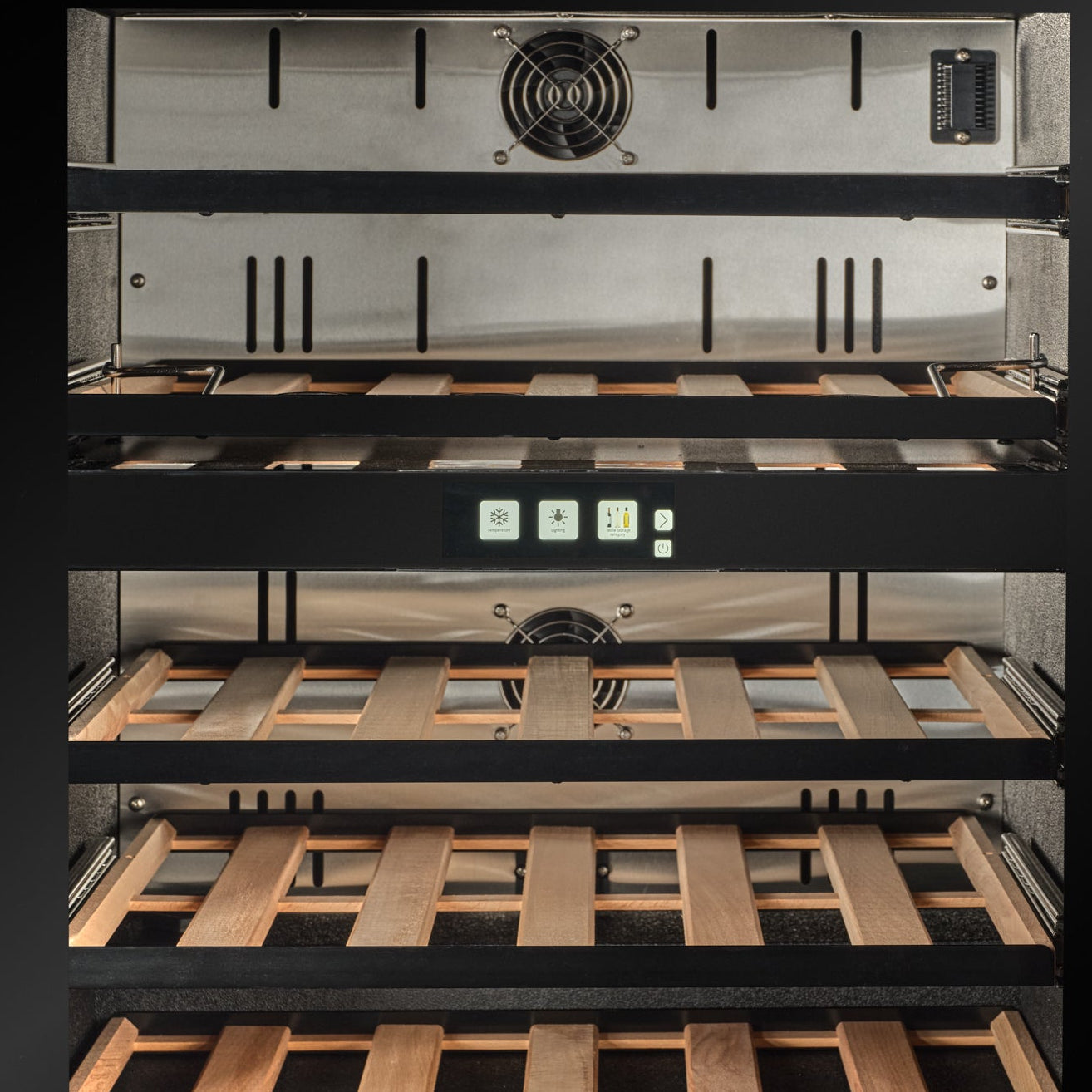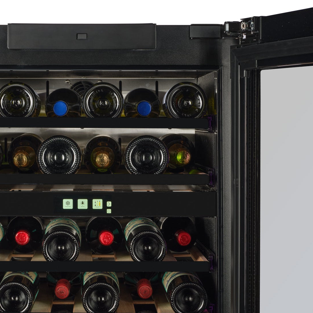 Has built-in HI & LOW temperature alarms for wine preservation, with audible and visible alerts in case of malfunction. Also includes an open door alarm to ensure the door is always closed properly.