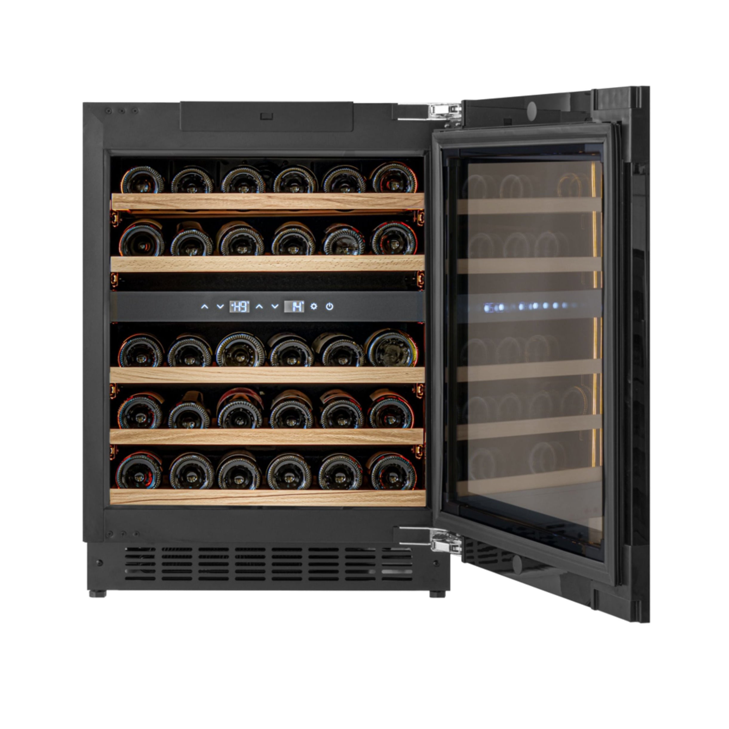 Has built-in HI & LOW temperature alarms for wine preservation, with audible and visible alerts in case of malfunction. Also includes an open door alarm to ensure the door is always closed properly.